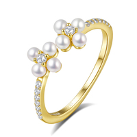 Оптовая продажа, Женские Ювелирные украшения, 925 стерлингового серебра, позолоченные инкрустированные цирконами, жемчужные цветы, Открытое кольцо